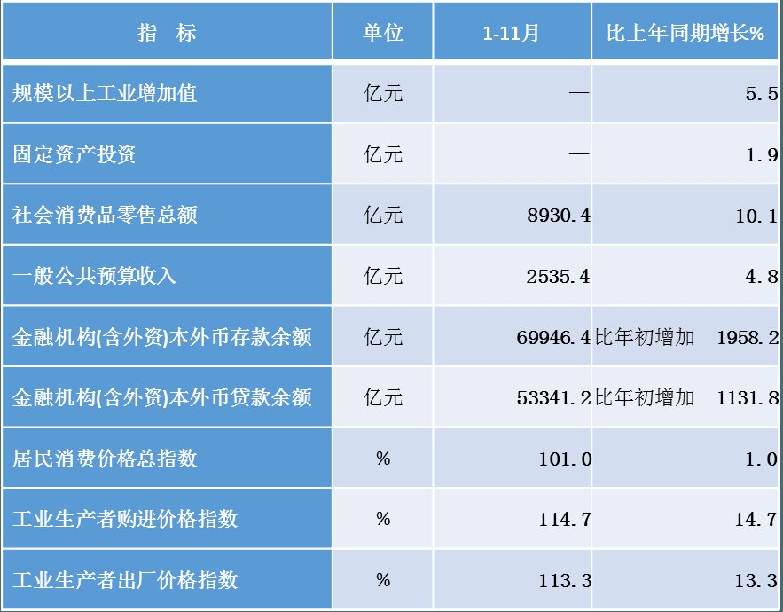 截至11月末,全省金融机构(含外资)本外币各项贷款余额53341.2亿元,同比增长2.4%,比年初增加1131.8亿元;金融机构(含外资)本外币各项存款余额69946.4亿元,增长4.2%,比年初增加1958.2亿元。